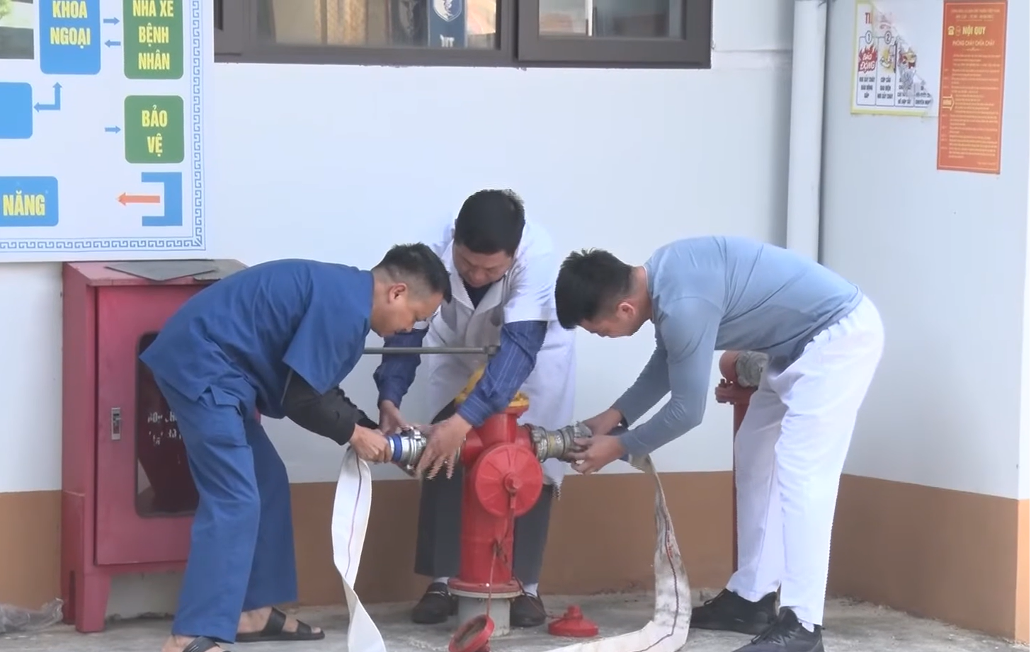 Bệnh viện đa khoa Đại Từ phối hợp với phòng cảnh sát phòng cháy chữa cháy công an tỉnh Thái Nguyên tập huấn nghiệp vụ và diễn tập phương án phòng cháy, chữa cháy và cứu nạn, cứu hộ